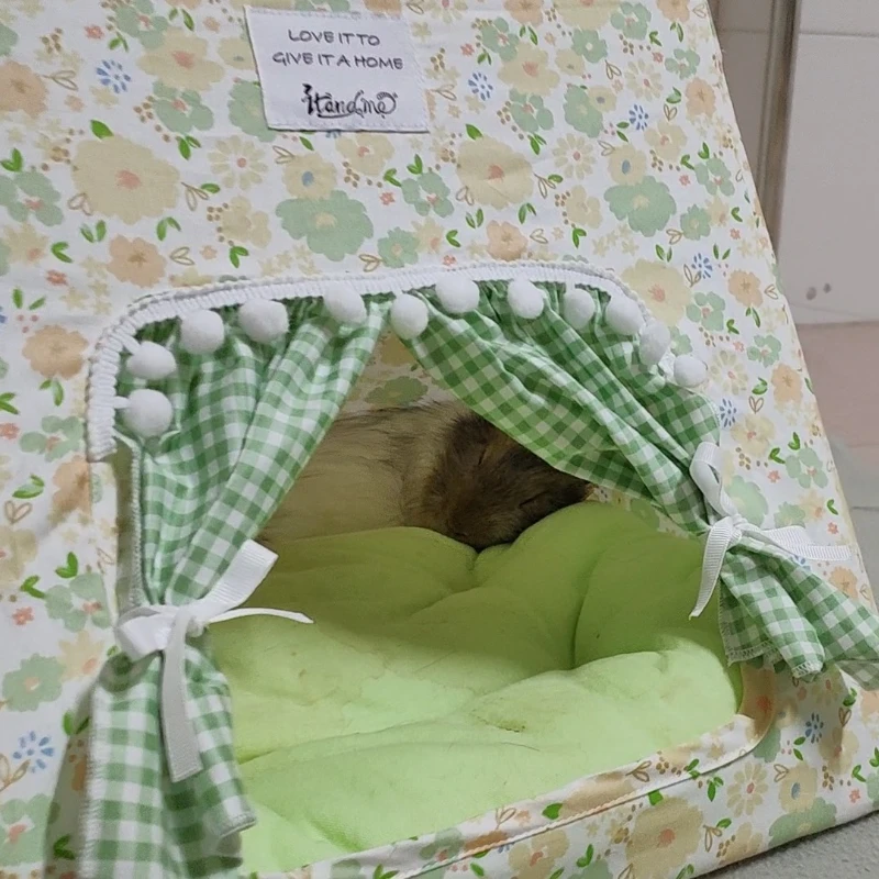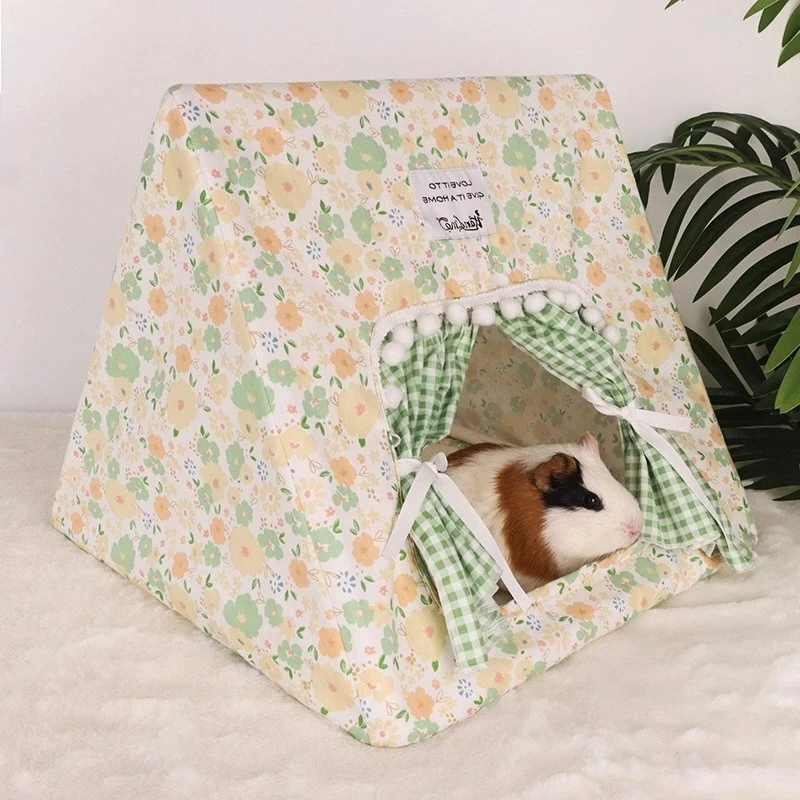 Welcome to Paws Feathers and Fins. Create a cozy retreat for your pet with this small pet tent hideout. Designed with a cute floral print and charming curtains, it adds style to any cage or enclosure. The bottomless design allows it to sit easily on different surfaces. Made from soft and comfortable materials, it provides a warm resting space. Ideal for rabbits, guinea pigs, hamsters, and other small animals, it suits a variety of pets. The enclosed shape helps pets feel safe and secure while relaxing. Lightweight and portable, it can be moved and repositioned effortlessly. It’s easy to clean and maintain for everyday use. This tent also adds a decorative touch to your pet’s habitat. A perfect blend of comfort and style for your small pet’s sleeping area.
