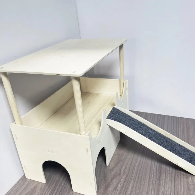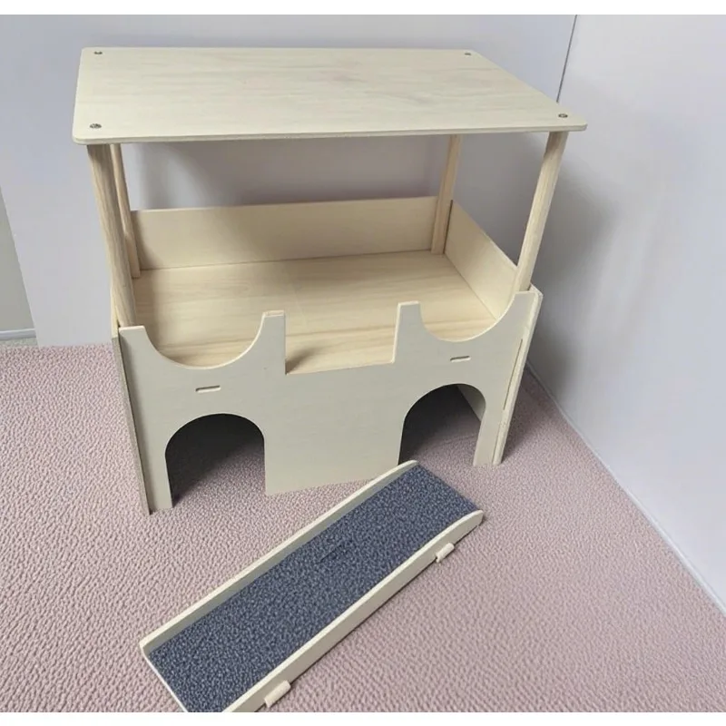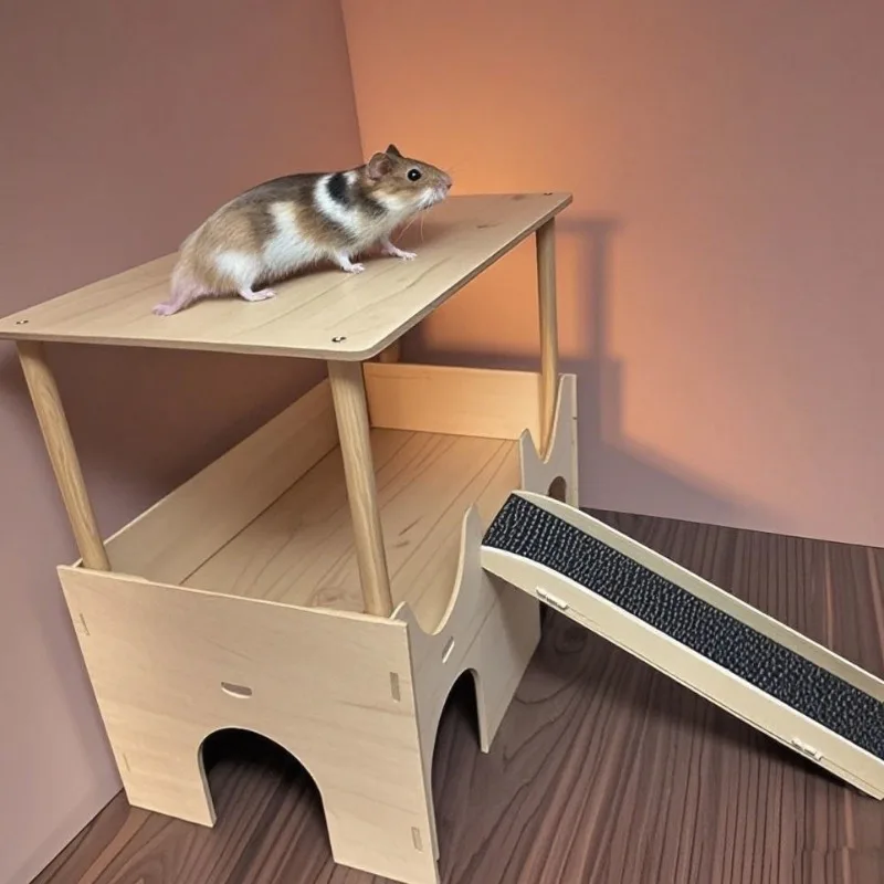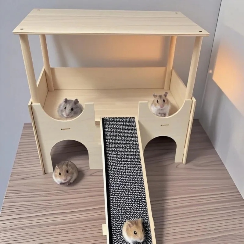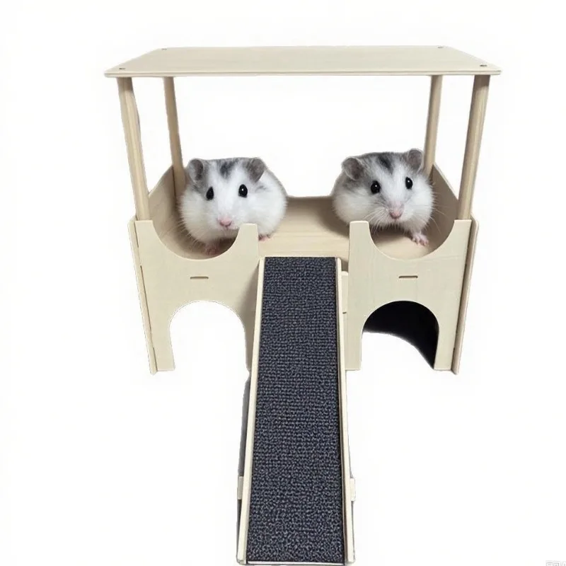 Welcome to Paws Feathers and Fins. Provide your small pet with a fun and safe living space with this wooden hamster house with platform. Designed for hamsters, guinea pigs, and other small animals, it offers multiple levels for climbing and exploring. The chew-proof construction ensures durability and long-lasting use. Includes a ladder for easy access between levels, promoting exercise and activity. The natural wooden material is safe and non-toxic for your pets. Its compact yet spacious design fits comfortably in most small pet cages. Perfect for hiding, resting, or playing, it enriches your pet’s environment. Easy to assemble and maintain, it is ideal for daily use. The multi-level structure encourages physical activity and mental stimulation. A practical and engaging accessory for keeping your small pets happy and active.